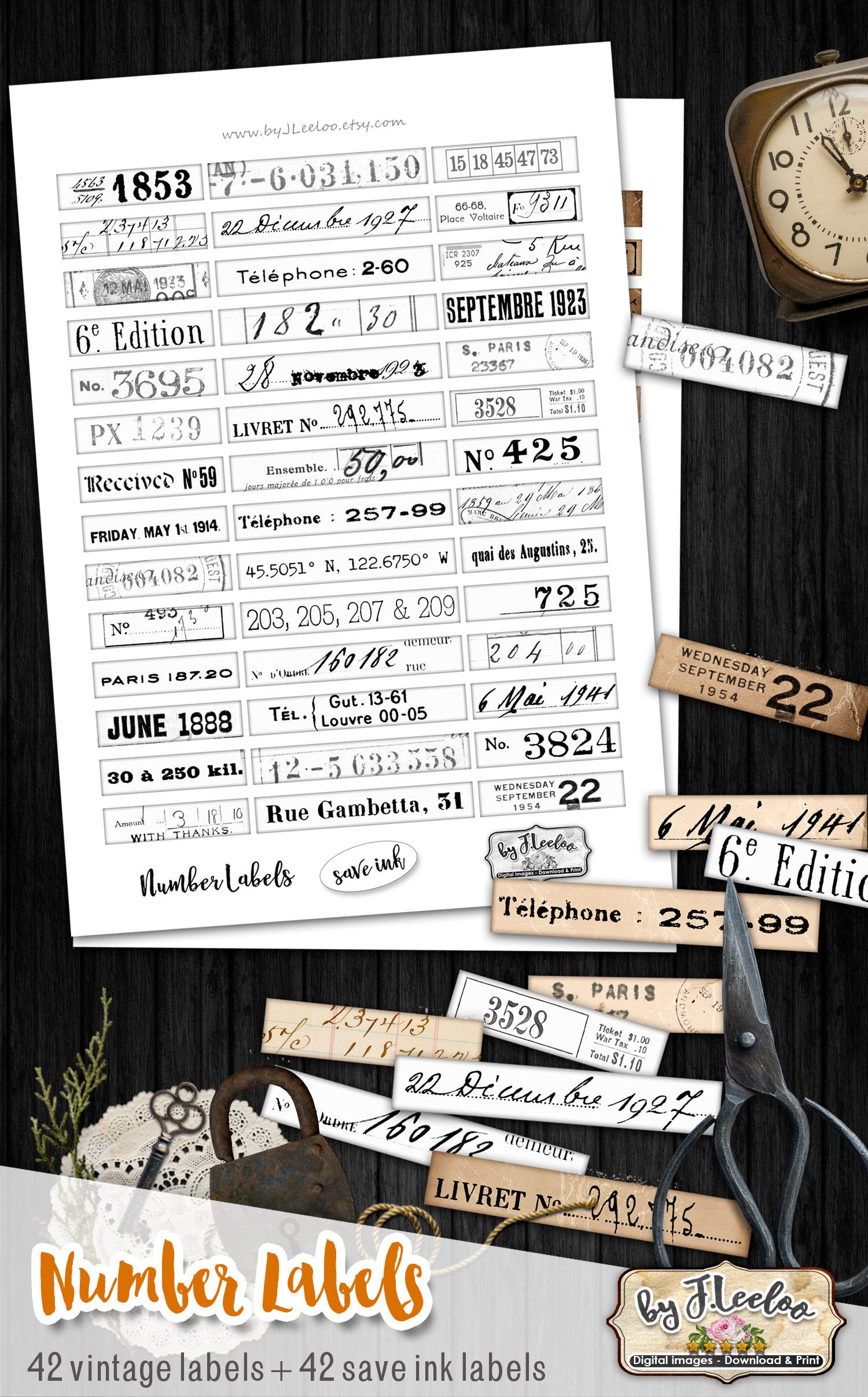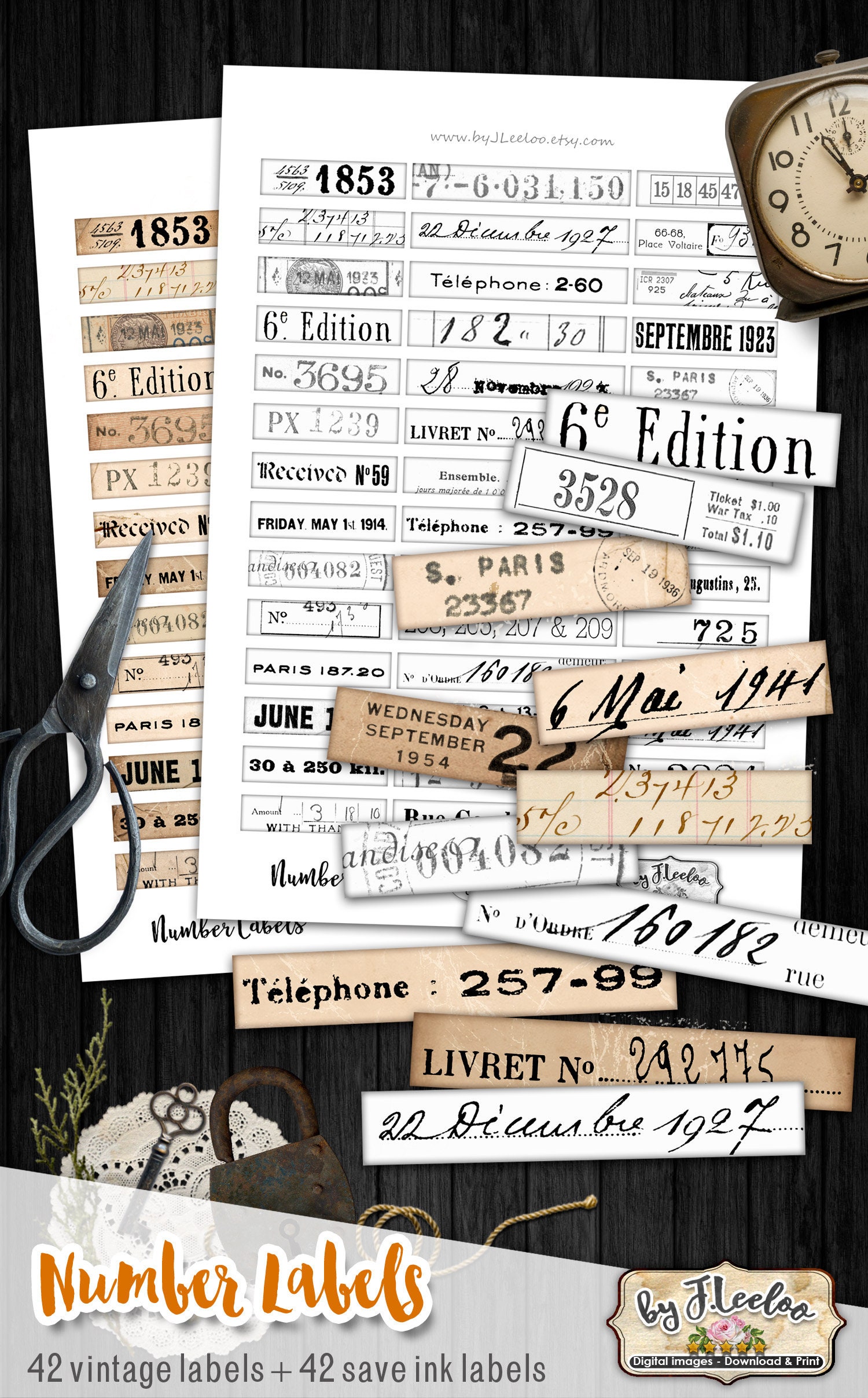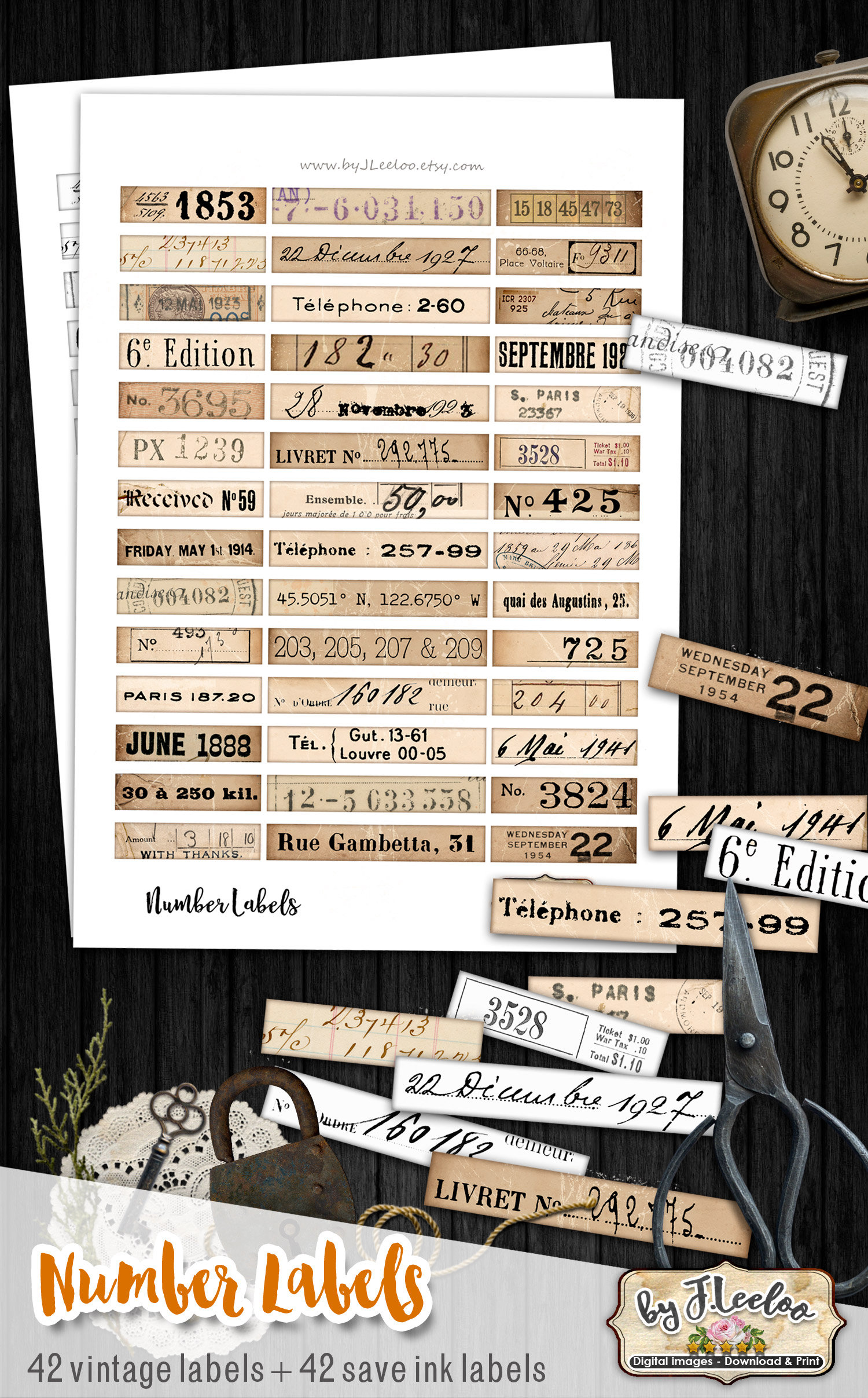 Digital collage sheets - label images instant download ready to print for your junk journal, scrapbook and your others craft project.