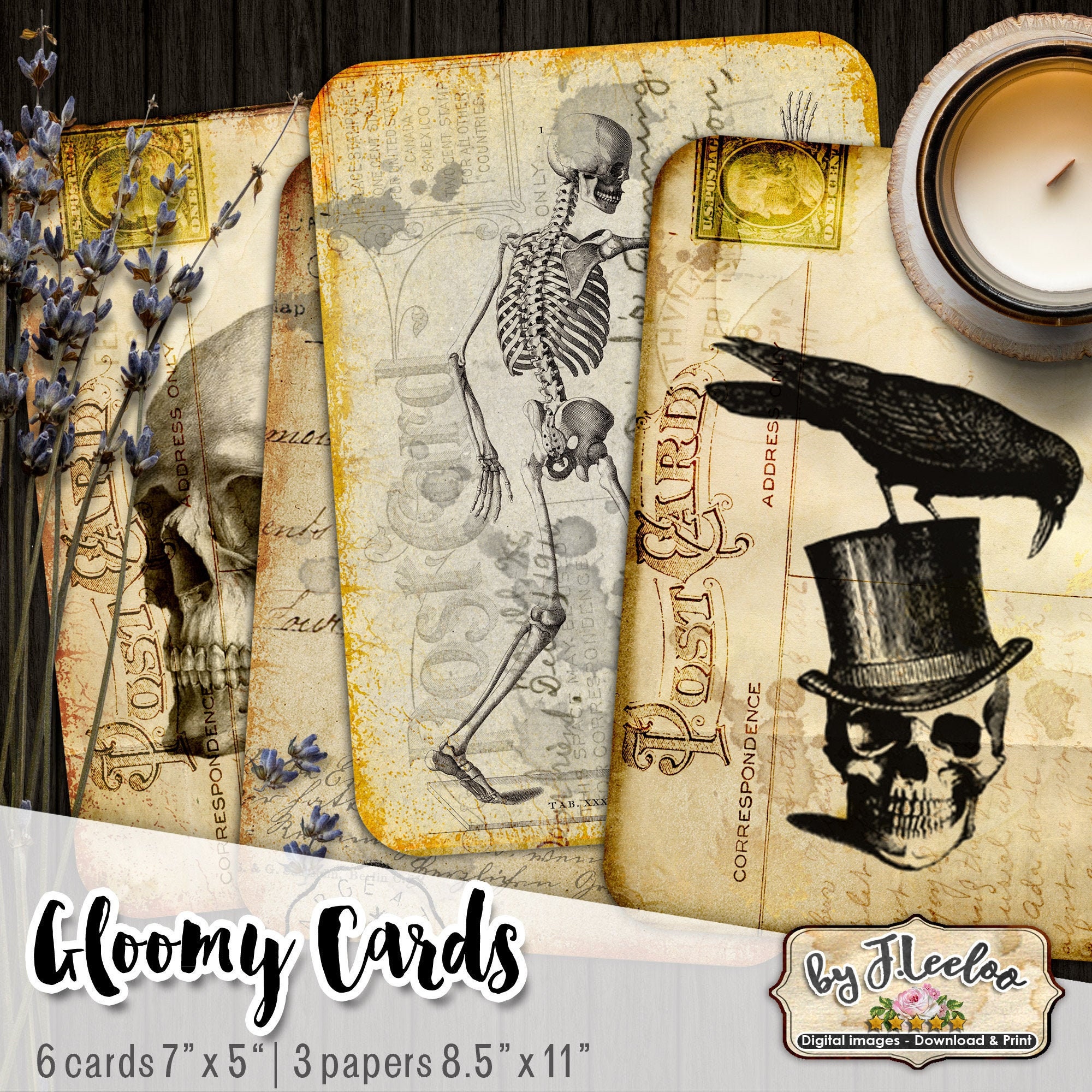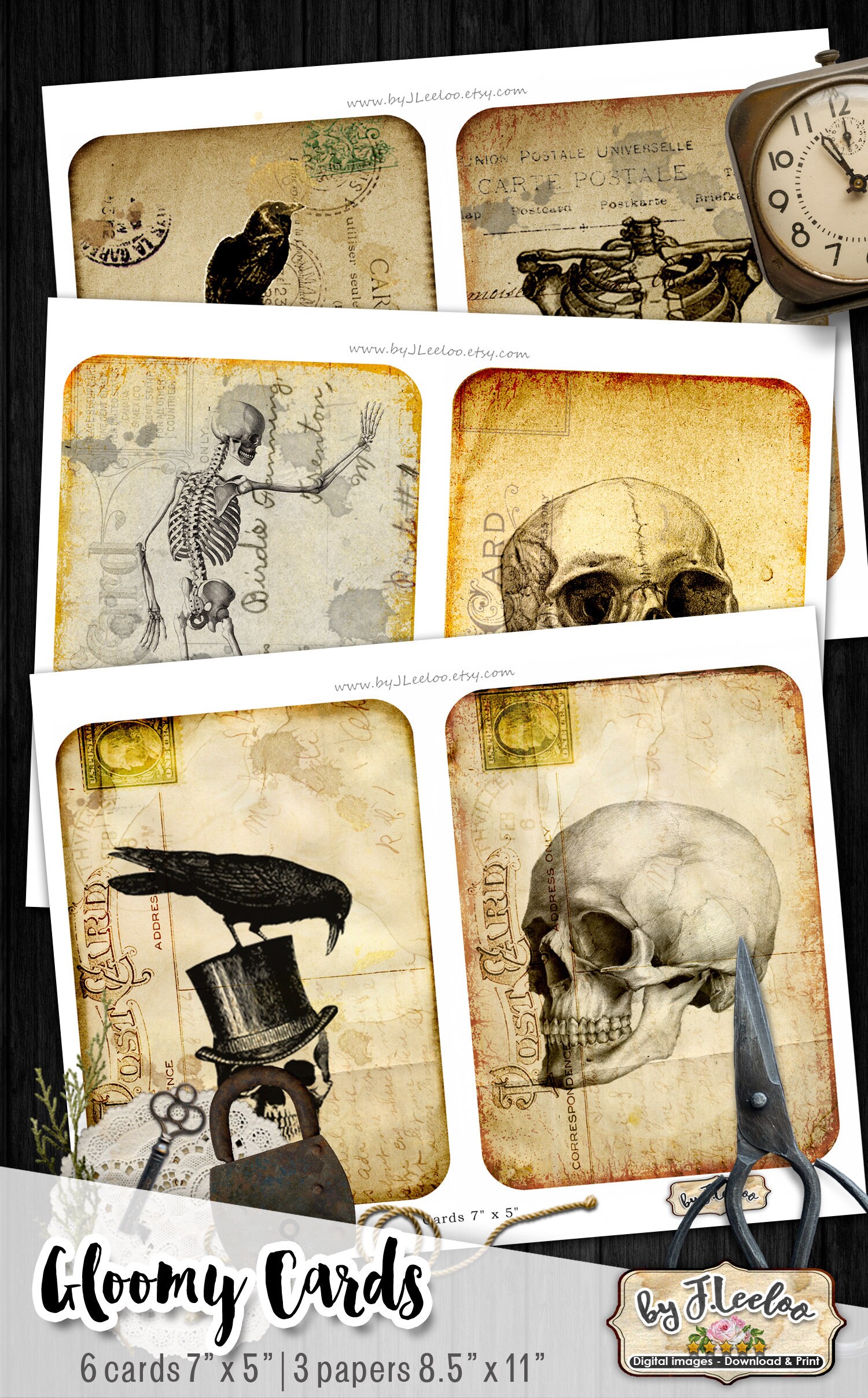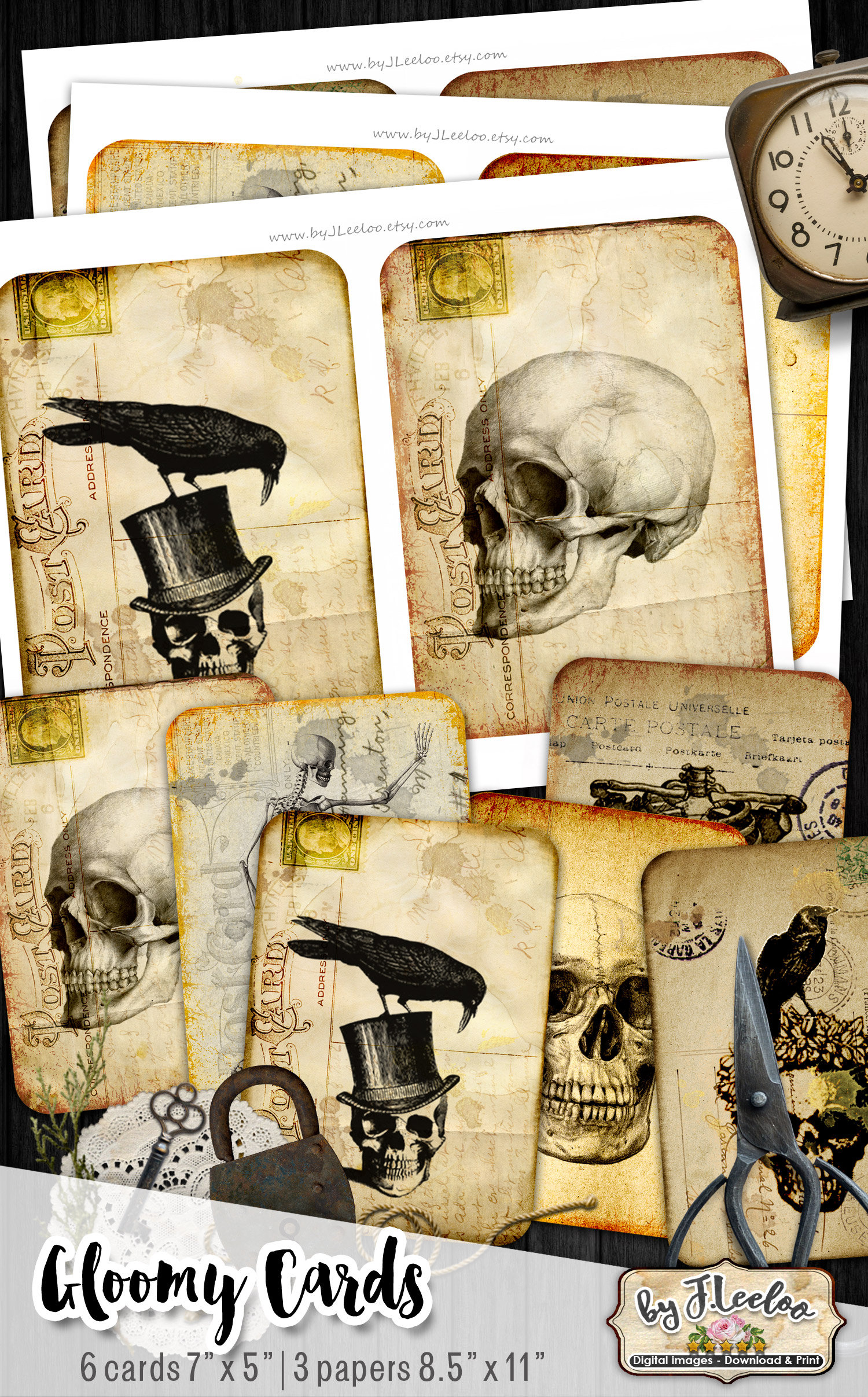 GLOOMY CARDS Digital collage sheet - Ghotic dark steampunk digital papers: images for your diary, artwork, postcards, hang tags, invitations, greeting cards, annuncements, scrapbook, backing cards.... all for your crafting project!