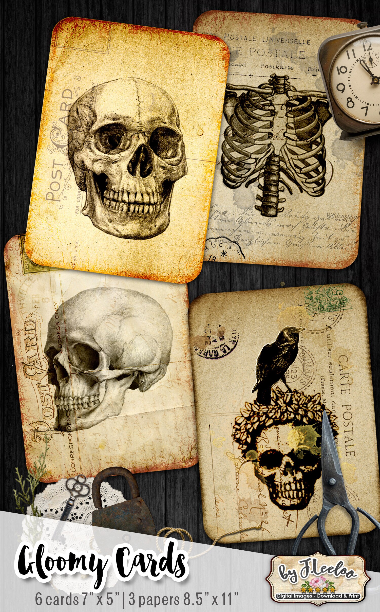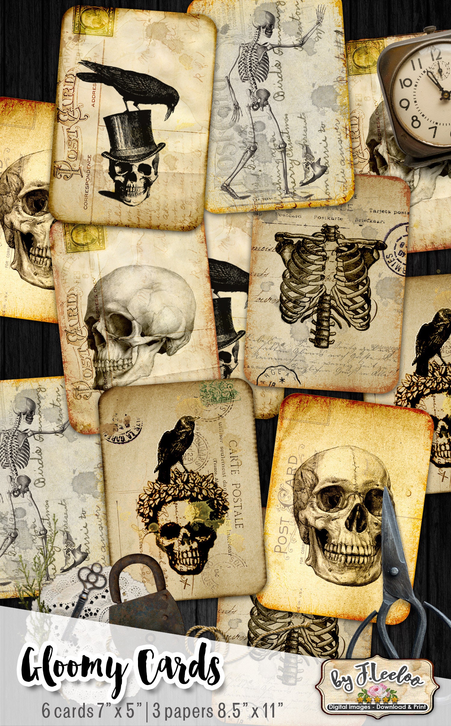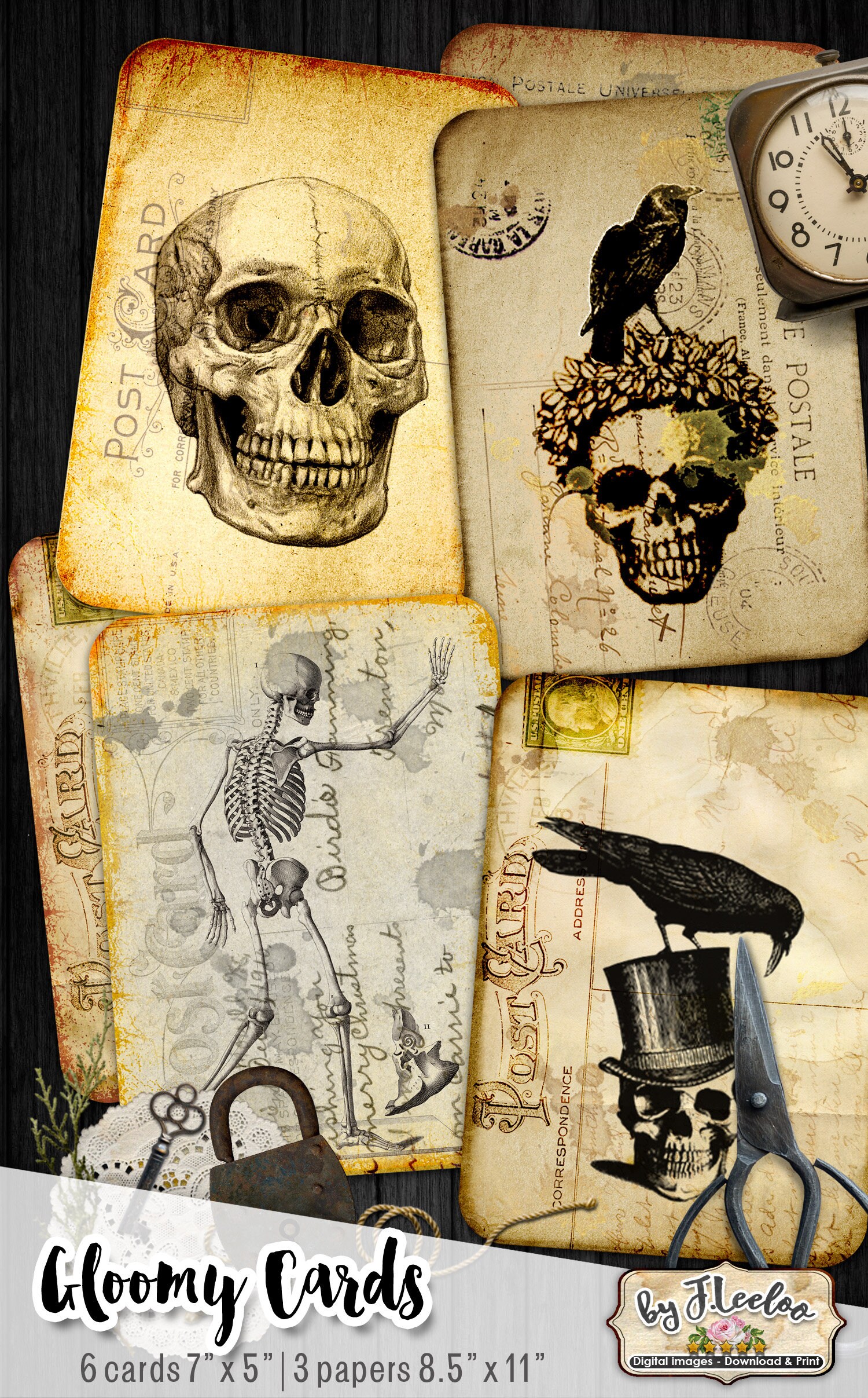 GLOOMY CARDS Digital collage sheet - Ghotic dark steampunk digital papers: images for your diary, artwork, postcards, hang tags, invitations, greeting cards, annuncements, scrapbook, backing cards.... all for your crafting project!