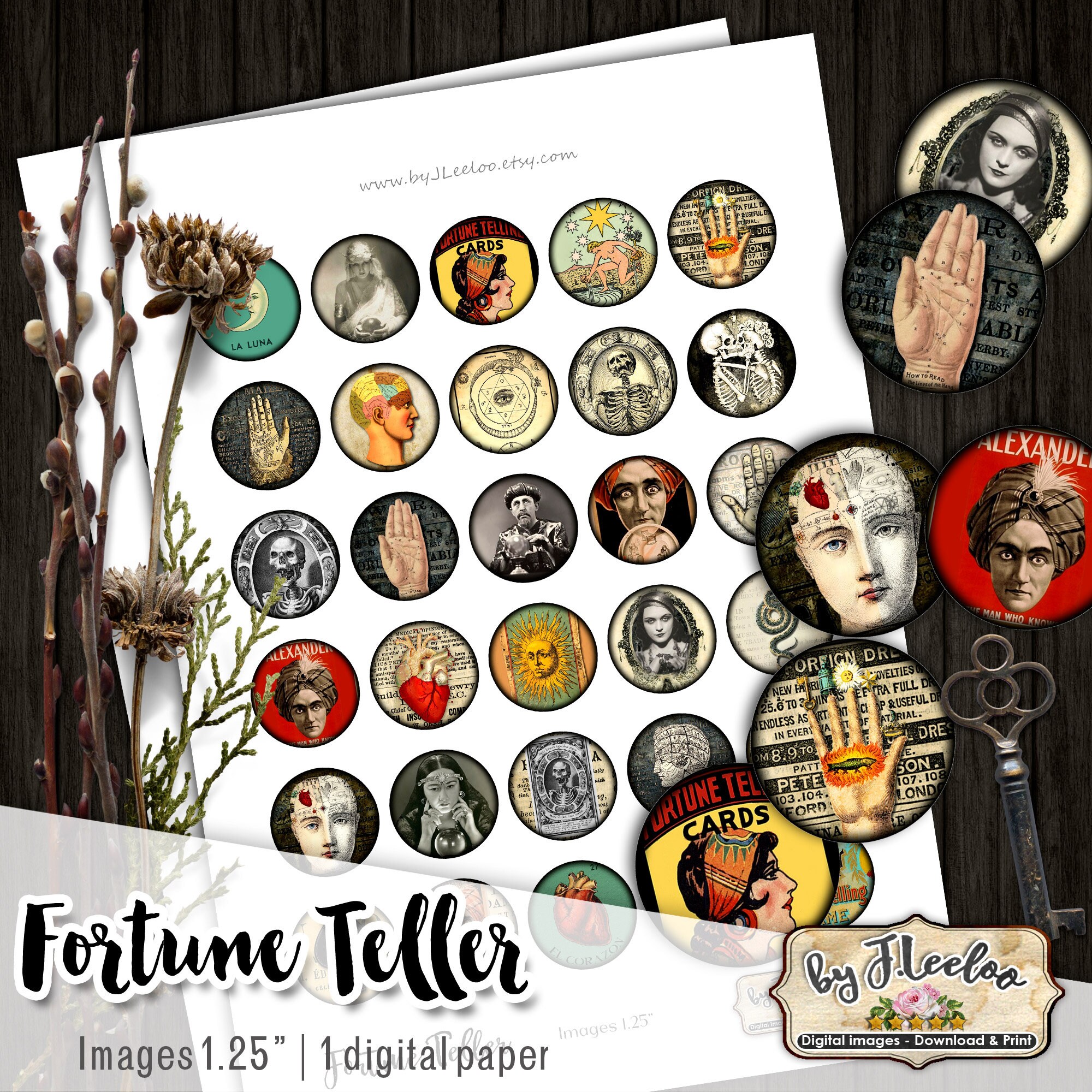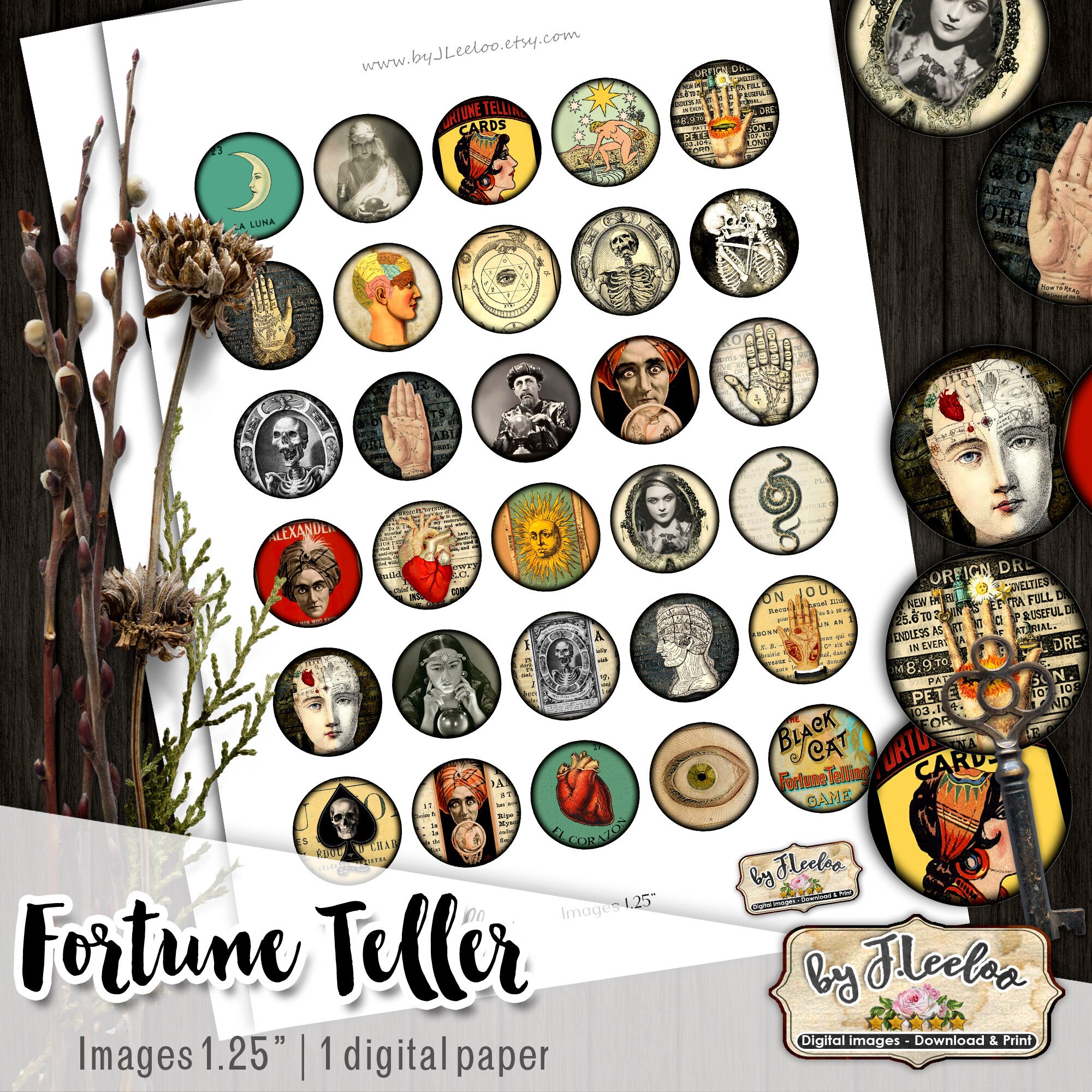 FORTUNE TELLER 1.25" halloween printable images download digital collage sheet for cupcake toppers pocket mirrors magnets cabochon